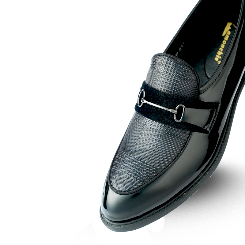 Structure meets flair. The Verado is defined by a bold checkered vamp, velvet mid-strap, and polished metal